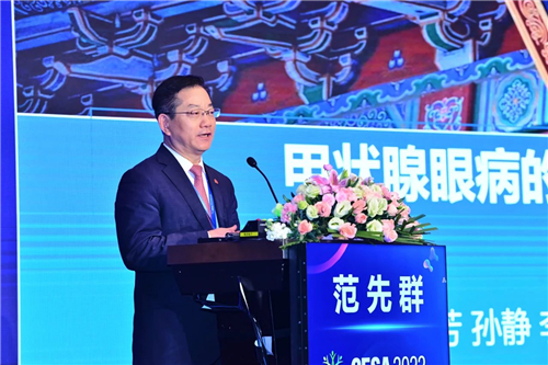 MMC創(chuàng)始人、中國內(nèi)分泌代謝病專科聯(lián)盟主席、上海交通大學(xué)醫(yī)學(xué)院附屬瑞金醫(yī)院院長、中國工程院寧光院士在致辭中說道,“今年,MMC實現(xiàn)了“雙1000”目標(biāo),即:“建立1000家MMC中心,管理1000萬糖尿病患者”當(dāng)中的第一個目標(biāo)。這離不開在座的每一位同道的信任、堅持和付出!全國MMC就是一個大家庭,所有的醫(yī)護人員同心協(xié)力,共同扮演著代謝病患者的健康衛(wèi)士角色。在大家的共同努力下,患者的糖化血紅蛋白達標(biāo)率和代謝指標(biāo)綜合達標(biāo)率均顯著提升,達到或超越了國際先進水平。MMC的管理模式和系列研究成果也得到了國際國內(nèi)同行的高度肯定,同時,MMC即將落戶粵港澳大灣區(qū),為打造健康“一帶一路”打下重要基礎(chǔ)。而這些都進一步標(biāo)志著MMC在積極響應(yīng)國家“健康中國”戰(zhàn)略的同時為我國代謝慢病管理帶來了重大變革和貢獻。” 大會舉行了隆重的MMC突破1000家盛典,中國工程院范先群院士、中國工程院寧光院士、朱大龍教授、趙家軍教授、嚴(yán)勵院長、谷衛(wèi)教授,國家標(biāo)準(zhǔn)化代謝性疾病管理中心省級分中心代表:劉萍教授、秦映芬教授、單忠艷教授、鄭超教授、吳勝利教授、陳蕾教授、王育璠教授、杜建玲教授、勵麗教授上臺,優(yōu)秀分中心代表:鄭啟東教授、戴元成教授、董其娟教授、徐鳳梅教授、姜冉華教授、顧雪疆教授、唐榮教授、齊敬霄教授,上海智眾醫(yī)療科技有限公司 CEO李振杰先生,阿斯利康商業(yè)創(chuàng)新執(zhí)行總監(jiān)王健先生一同上臺參與1000家醫(yī)院的落地慶典。范先群院士:甲狀腺眼病的發(fā)生機制和治療進展